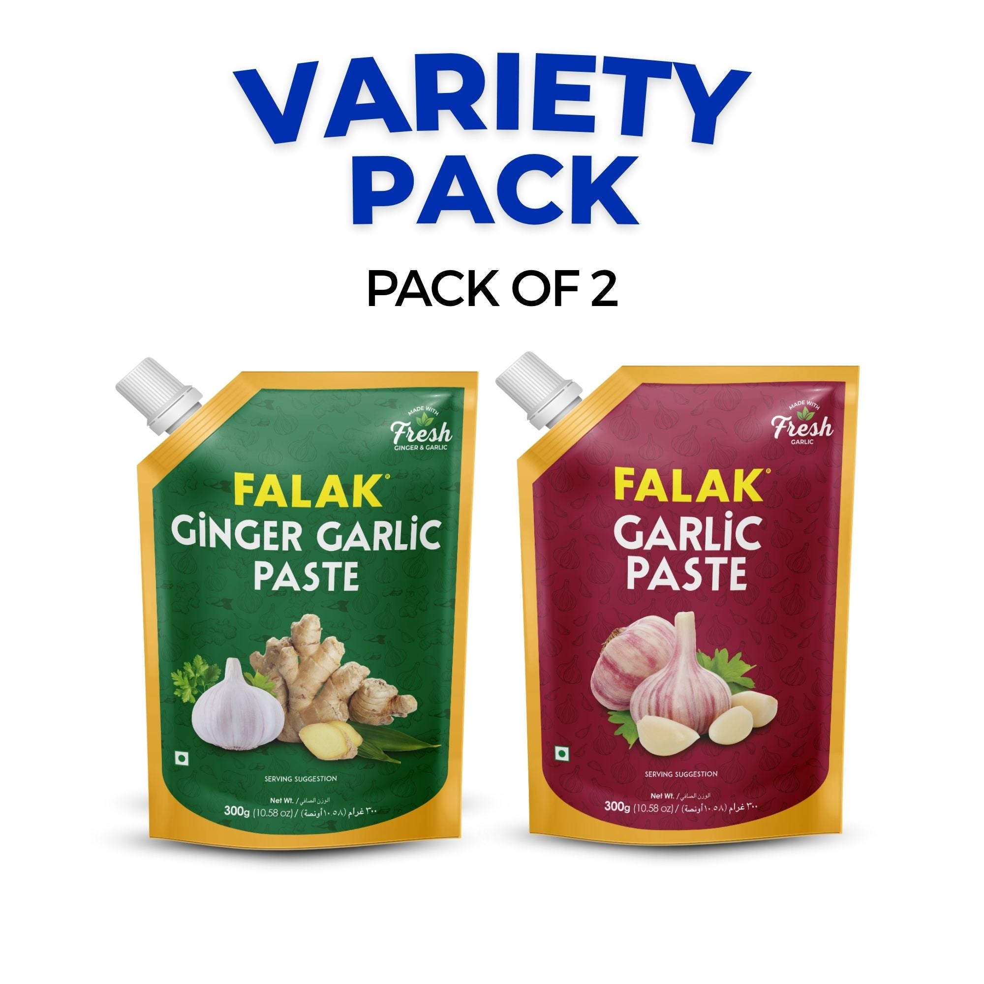 Simplify your kitchen prep with the Falak Ginger Garlic Paste + Garlic Paste Bundle Pack (2 pouches) — the perfect duo for authentic flavor and convenience. Made from fresh, premium-quality ingredients, these ready-to-use pastes bring rich aroma and traditional taste to your dishes without the hassle of peeling or chopping.